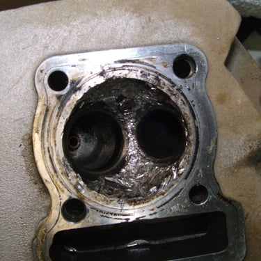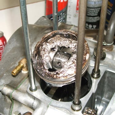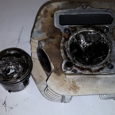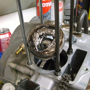 Well after eight months of shear fun, my $1150 Kitaco 145cc Kit grenaded into a very expensive fix. The head is savable, but hammered, the valves are history ($150 a pair), the piston has a sunroof, and the cylinder needs a sleeve ($150).