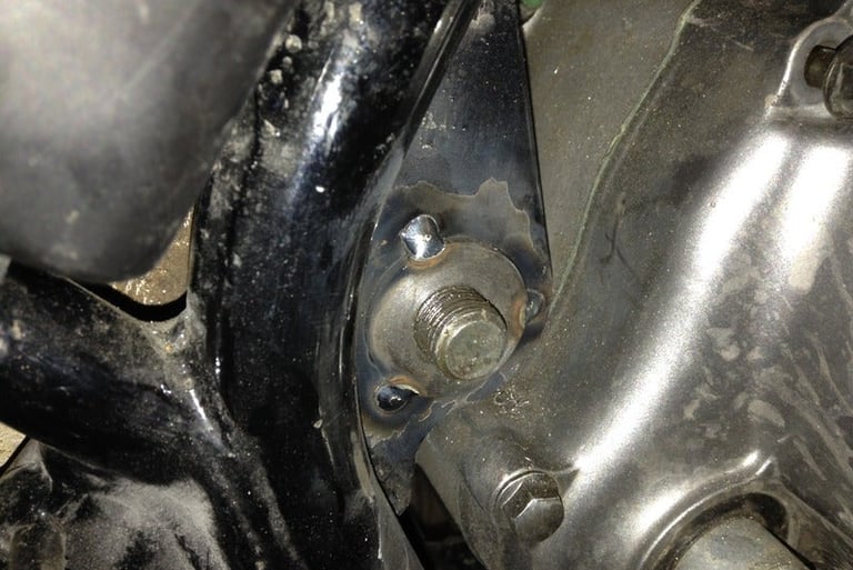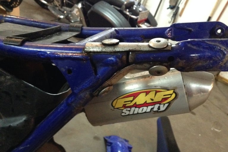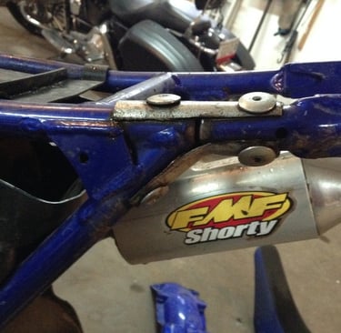 Last weekend I began tearing things apart. Found this once the plastic was removed from the YZ. Couldn't have welded it, huh?: