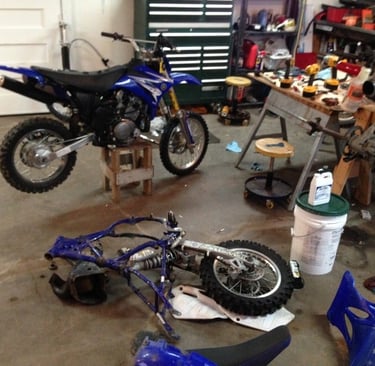 I've never bought a new full-size motocross bike, or really anything brand new, so for once I just wanted to splurge and try to make something unique and my own, with the best of everything I could find. I kept track of every penny spent, and also factored in what I got back from selling the stock TTR wheels, suspension, etc. All told, I am about $25 short of $5k. Silly and impractical? No doubt, but I enjoy projects like this, and plus, it's like Christmas all year long when you get parts in the mail every week!