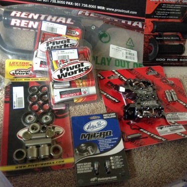 Aside from chain/sprockets, some graphics, maybe some handguards, and some talon/excel wheels, I think I have everything...