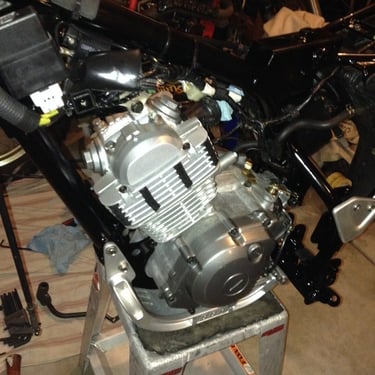 I rode this thing when I picked it up, everything seemed fine. When I unloaded it at home a few hours later, I took it for a spin around the block, letting it warm up for a few minutes beforehand. My buddy gets on, goes 60 ft, and in the process of clicking 3rd gear, the whole bike just locks up and skids to a halt on him. Top end is fine, I've gotten it started again, but something in the tranny let loose. Can't find neutral, and it intermittently locks the rear wheel up, even with the clutch pulled in. Looks like more work ahead, as it's probably not worth much as it is...