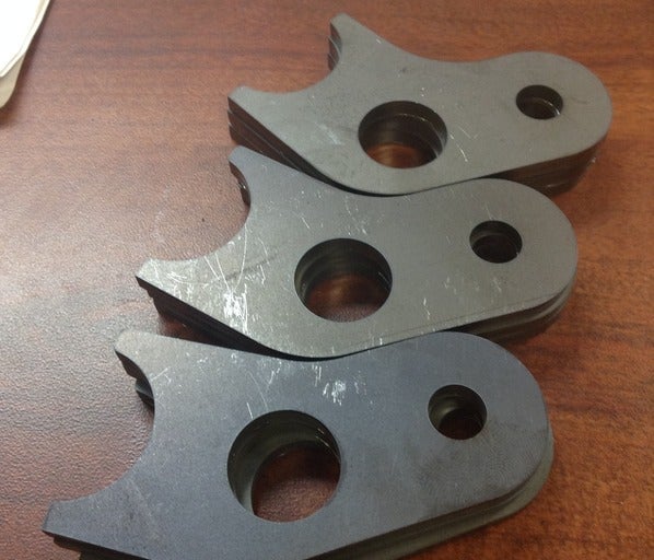 I cut 3 different tabs for the linkage relocation, varying 15 degrees each. Ended up going with the most severe angled ones.