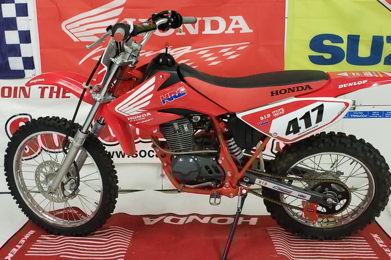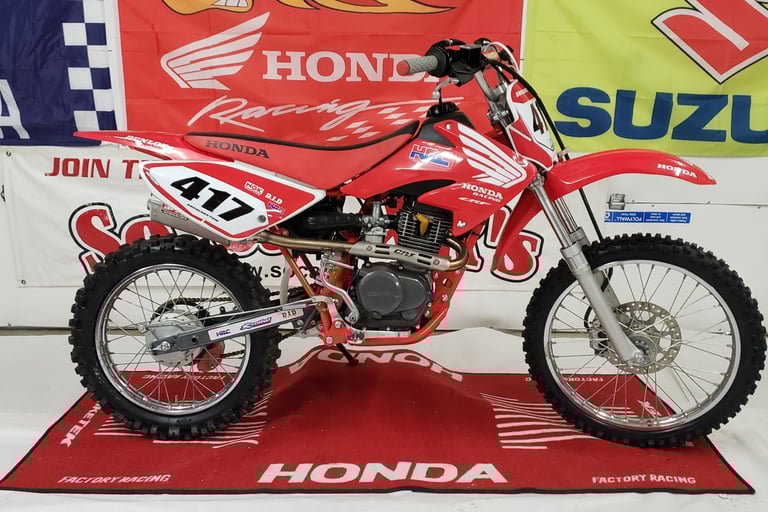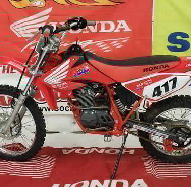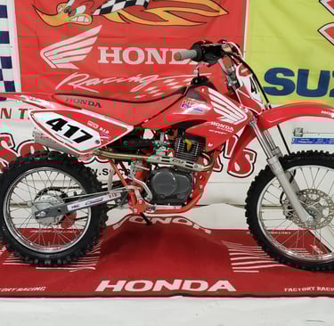 I picked up this CRF120 about 10 or 15 years ago and kept it stock for a while. The main thing you should notice it the TTR125 front end. This came about one at Milestone, I let a friend of mine's kid ride it. It was his first time on a bike and he complained about the front brake. I was like, "Pshhh, let me ride it." And sure enough, they didn't stop. So, it got me thinking, what if I used a TTR front end? I took to Dave Miller (RIP) and he welded in the stock crf stem onto the bottom TTR clamp. (I think, honestly I cant remember) Plus he made a little spacer. So now, the suspention is night and day difference and it stops like a champ. Everything else is pretty straight forward. BBR120 kit, Web Cam 69/68, 200x carb, DMN Shock, bars, IMS footpegs, BBR CHain guide. Powder Coated frame and other parts. It runs great and is way more fun to ride than a regular stocker mod. Now, You can buy a stem from rhmotoworx.com
