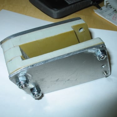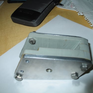 2. Clamp the shaped aluminum sideplates to the teflon and drill the holes. Mark the outline, remove the aluminum and cut the teflon to shape. Cut an extra short piece for the bottom. Like the aluminum, bolt the 3 teflon pieces together before final shaping with a file.