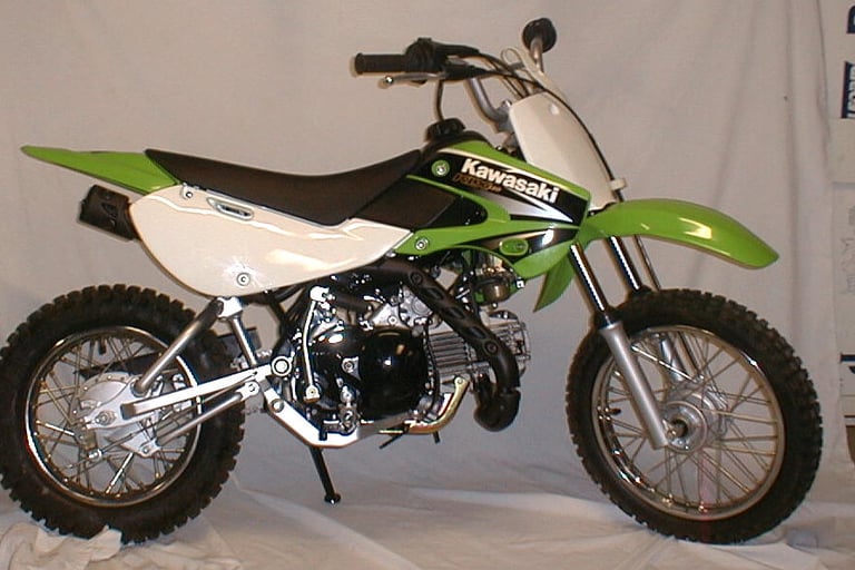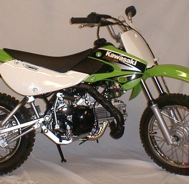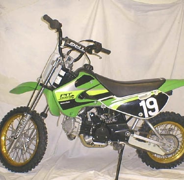After selling my CR/XR100 conversion, I decided to take a trip down mini-bike alley, so I picked up an '04 KLX110. The little KLX is getting ever more popular as people are beginning to realize their potential in power, suspension, and economy. So the next few months (or weeks), I've decided to do a project KLX110 article to show just how to build one and not break the bank (at least compared to a fiddy). The first thing I did was to go to Callaway Motorsports in Riverside, CA. and pick up a brand spanking new 110. They gave me a great deal and the paperwork was finished before the bike was even prepped. If there is one thing I can't deal with, it's haggling back and forth over price, etc. and the ol' "Let me talk to my sales manager". The whole thing took less than fifteen minutes. I gave them a price, they said,"Fine" . . . done deal.