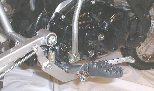 Being that the rear brake pedal is lower than the rest of the motor, the KLX doesn't sit on a stand very well. Combine this with the fact that it is a 143lb little tank and I hated putting this thing on a stand every time I rode it or just in the garage. So I decided to put a kickstand on it. The sidestand is a combination of a XR75 bracket and a XR80 kickstand. The bracket was welded onto the Two Bros. chromoly footpeg mount and works perfect. I wish Two Bros. would offer an optional brace with a bracket already on, in order to accept the stock sidestand. This is kind of like the electric start on a big bike, some people like them, some don't. For me, this is one of my favorite upgrades.