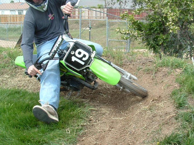 The KX60 forks were also off Ebay (only $40). I dropped them off at Fineline Suspension where they valved them and installed .35 springs. They are 10 times better than stock, the only problem now is the shock. So I am still a little (a lot) hesitant to bomb jumps, which means I can't fully enjoy or test the forks, so further adjustments will have to wait, until I get a shock.