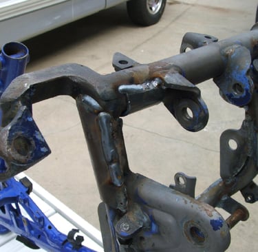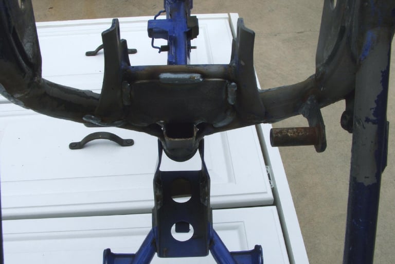 The pic is a bad angle, but notice the inside weld on the bottom hole. It uses a washer from a rear axle as a gusset. It fits perfect.