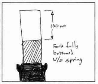 3. Fill fork with 20w oil and set the level to 100mm below the top of the tube with the fork fully collapsed and the spring removed.